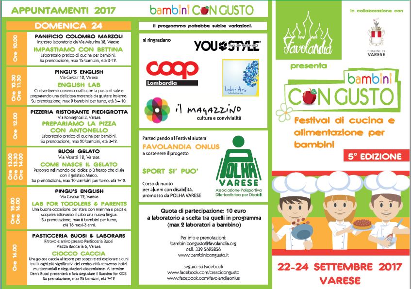 Il 22, 23 e 24 di settembre vi aspettiamo con fantastici laboratori al festival dell'alimentazione per i bambini - Bambini con Gusto